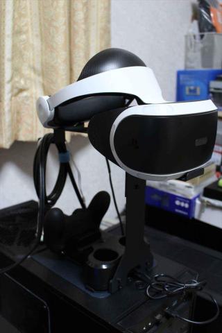 PSVR本体と、後ろ側にはヘッドホンを設置できます。