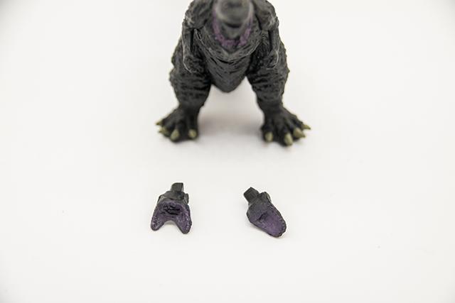 段々と第2形態からゴジラらしい顔つきや体つきに変化している途中経過を感じさせるディテールです。尻尾もまだ未発達状態なのをちゃんと再現しています。