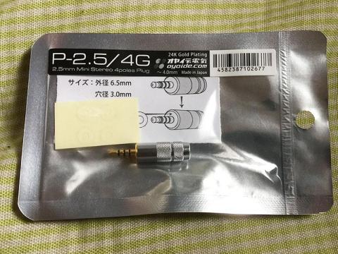 2.5mm4極バランスプラグは、今回はオヤイデ製P-2.5/4Gを使いました。前回利用したNOBUNAGA Labs NLP-PRO-IS2.5の予備は残っていたのですが、どうせ失敗するだろうと思いこちらも用意していたのです。