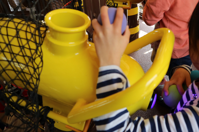 ボールを横の穴などに入れると、筒から飛び出してきたり…