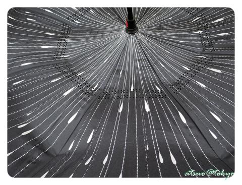 外側は黒無地で、内側は雨の滴がデザインされています。