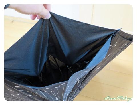 そして傘を閉じて車の中に入れた時には濡れている面が内側になっているので、周囲を濡らさずに済みます(先の部分からだけ水が滴る状態)。