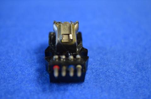 今回はM-15E ですので(ネットから借りてきた下の画像は交換針が緑色なので丸針でM-15ですが)M-15E交換針は橙色になります M-15Eは旧タイプと新タイプがあり今回のはボディが白なので1969年発売の旧タイプです