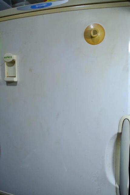 小さなブロックひとつで 中型冷蔵庫のパネル一枚がきれいになりました。