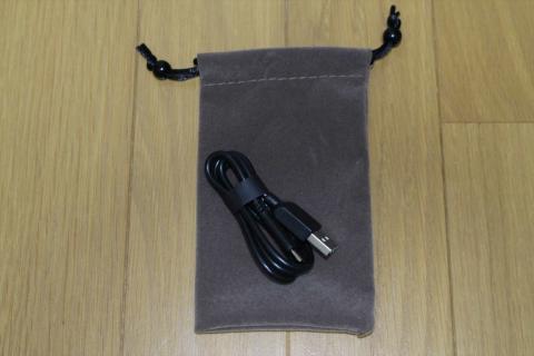 専用ポーチと充電用のMicroUSB-USBケーブルが付属しています。