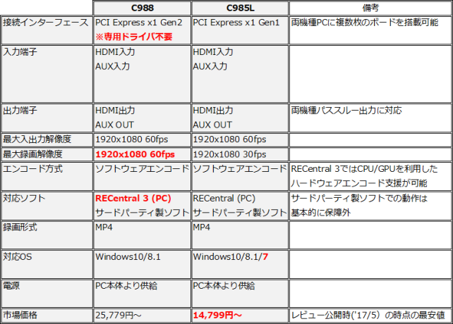かつて、USB2.0接続のHDMIキャプチャーユニット「AVT-C878」もレビューしたが、今回の「C988」と「C985L」は全体的に接続インターフェースがPCI Express接続になっている点でそこまで大きな違いがあるわけではない。逆に、比較すべき点が少なくなってきている。