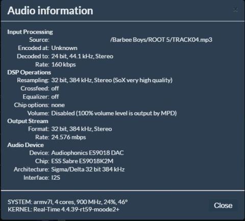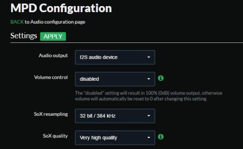 「SoX resampling」に「32 bit / 384 kHz」を選択。