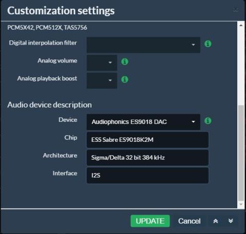 「I2S audio device」に「Audiophonics ES9018 DAC」を選択。
