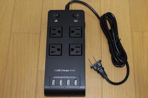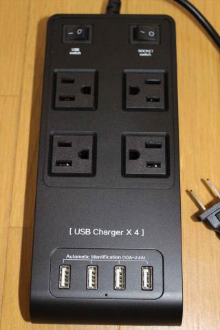 コンセント口は4個と少なめですが、USB充電ポートが4つあるということで、4個のコンセントをフルに使用できます。