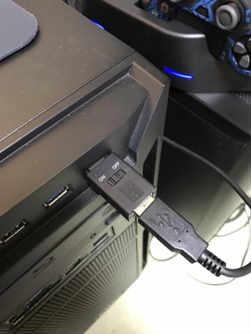 USBスイッチアダプタを使い、必要に応じて給電させています。
