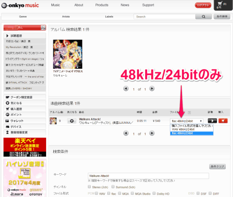 これについてはe-onkyo musicで取り扱っているとのこと。