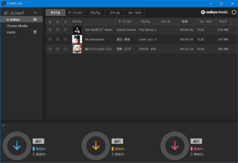 e-onkyo musicのアカウント情報を入力すると、購入楽曲リストが表示されます。
