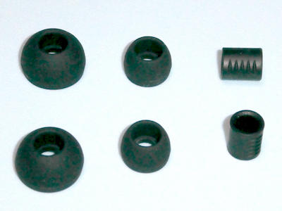 交換用のイヤーピースはサイズ違いの大小が付属。(中はイヤホン本体に装着済)