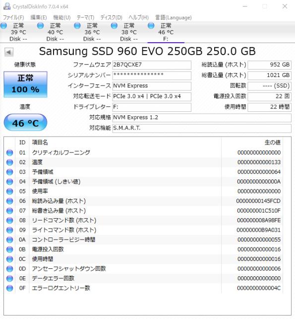 ところが、実際に使ってみると、960 EVOでも充分な速さなので、今回は迷いもなく960 EVO一択での購入です。