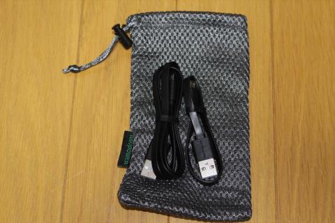 充電用のMicroUSB-USBケーブルは、長さの違う2種類が付属しており、携帯用ポーチまで付いています。