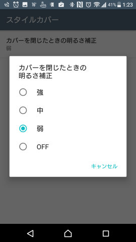 カバーを閉じた状態の時に明るさの補正をスタイルカバーアプリで設定できます。