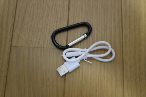 カラビナフック、充電用のMicroUSB-USBケーブルが1本付属しています。