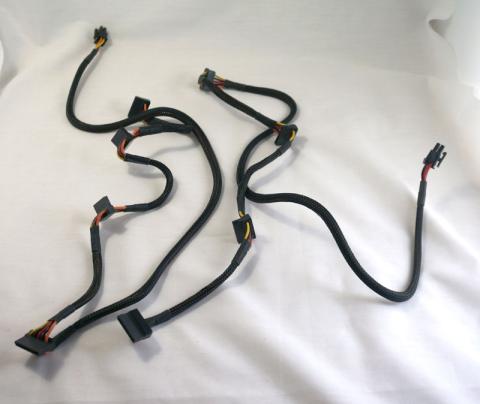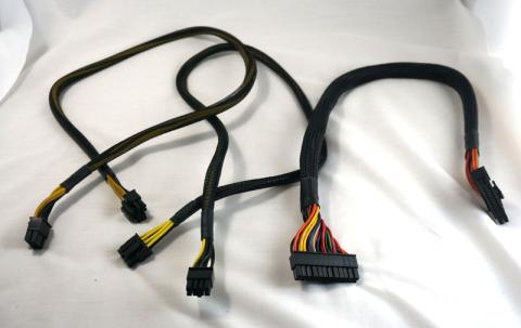 24pin電源1本にCPU 4+4pinが2本。X99等複数の8pinを持った大消費CPUも安心だ。(8pinケーブルは本来長さが違う2本がついているらしいのだが同じだったので元の持ち主が間違えたか?)あと24pinはコネクタ含めて55cm程度と他のケーブルより短めなので大型ケースの電源下配置は注意。