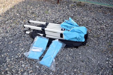 以前に使用していた簡単タープテントはアルミ製だったので軽かったのですが、強風時にひっくり返ってしまうと簡単に折れてしまいます。
