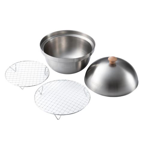 家庭用でコンパクトな鍋のため、吊るすことはできませんが網の上において燻製する商品です。