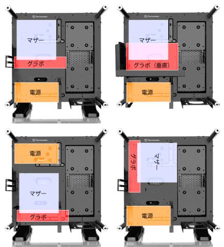 またこのケース、マザーボードの取り付け位置を3か所から選べるようになっている。