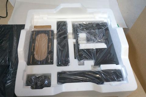 縦置きと横置きが可能。特に縦置き用の脚は重く大きい。この脚のせいで幅が広がっているので設置面積は結構でかいのだ。シルバーの棒はガラスパネルを支えるものでこちらも重い。当然ガラスパネルも重い。総重量はスカスカな見た目に反してかなり重くなる。
