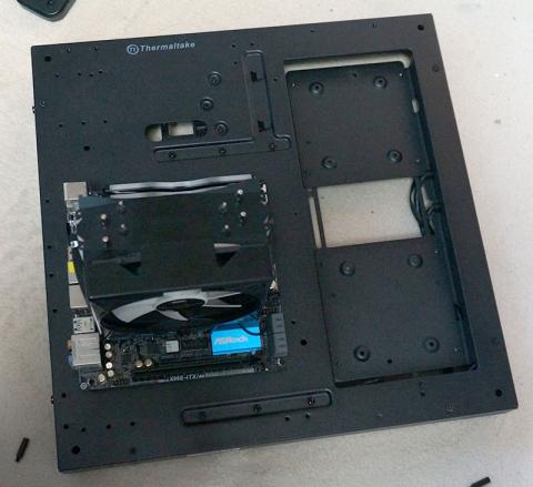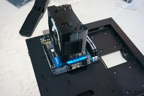 結局今回はNarrowILMソケットの特種マザーというのもあり、空冷クーラーは断念。他の写真の通りCorsairの120mm簡易水冷を装着している(しかしX99E-ITX付属のNarrowILMマウンタはCoolermaster用なのでそれを改造して無理やりCorsairを装着している。ファンはENRMAXだしわけがわからないよ)
