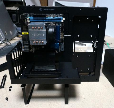 ホコリが入りまくるという難点があるものの、周囲がガラ空きでいくらでも放熱できるので(延長ケーブル等を使って組み換えのメンテナンス性を上げれば)ベンチ台的な使い方にも耐える。