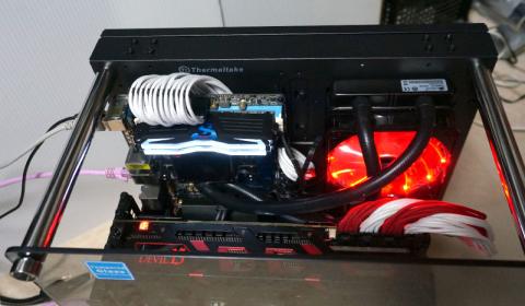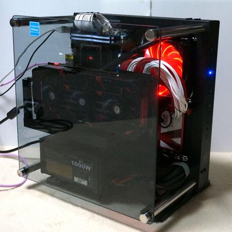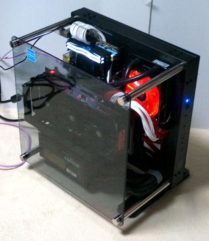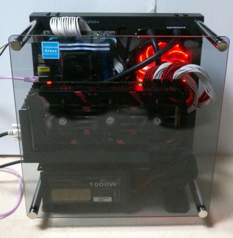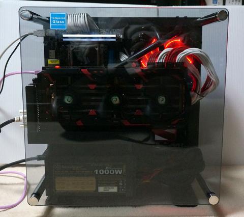しかし組みあがったPCをニヤニヤ眺めるにはステキ。X99E-ITXとDevil13という2大ゲテモノパーツを飾るには我ながらベストなチョイスだったと思う。