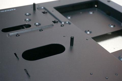 特に気になるのが配線を表に出す穴。どちらも(他のマザー配置を考慮したのかもしれないが)標準配置だとマザーの下に隠れてしまう位置。なのでマザー装着前にケーブルを通す必要がある。