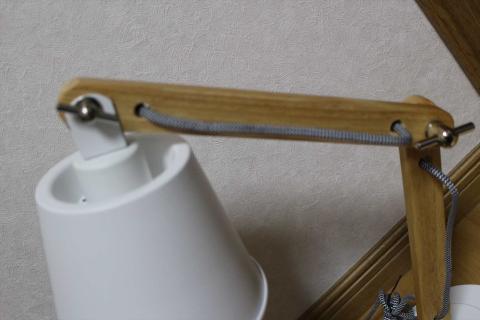 木製のアーム、2軸のヒンジで、いろんな角度に調整ができます。