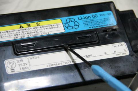 事前に頂いた情報では、このパックは、自転車本体が不調となって自転車を処分した際にパックだけ保管してあったもので、充電残量も3/4あるとのことでした。