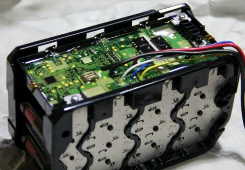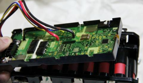 基板は基本的にBMS(各セル(直列各段)の電圧を常時監視して、充放電の規制をするしくみ)の機能を持つようですが、独自に残量や回数の管理なども行っているようです。