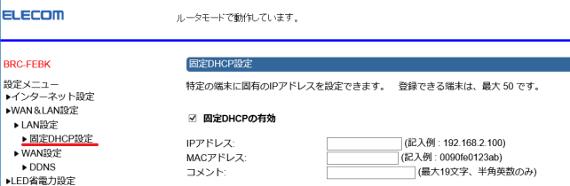 MACアドレスを指定する事でPCのIPアドレスをを固定する事も可能です。