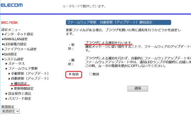 システム設定-ファームウエア更新-自動更新(アップデート)-通知設定を「有効」に設定し、ブラウザで教えてくれる様にしています。