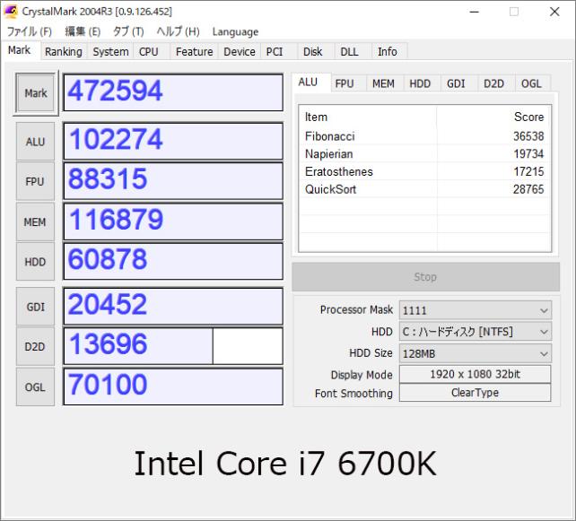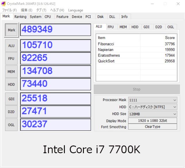 グラフィックに関しては、Core i7 6700Kが、Quadro K4200 , Core i7 7700Kが、GeForce GTX1080と性格が異なりますので、参考値としてください。