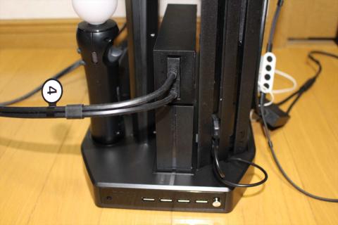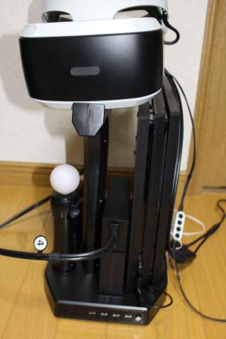 奥側で見えていませんが、PS4コントローラー2台、モーションコントローラー2台も充電できます。