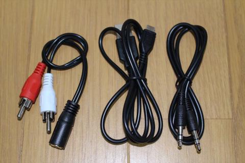 オーディオケーブルが2種類、充電用のMicroUSB-USBケーブルが1本付属してます。