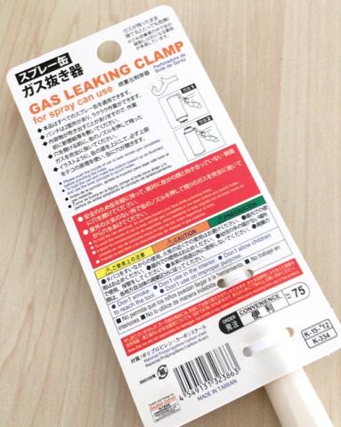 スプレー缶 ガス抜き器 GAS LEAKING CLAMP for spray can use K-334 です。