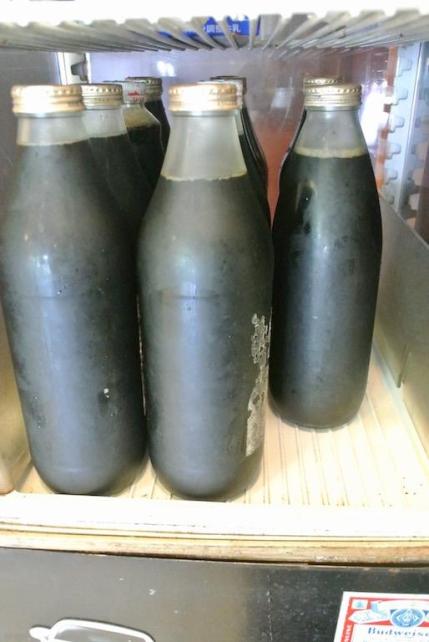 抽出液は、手早く1リットル入りガラス瓶に移し替えて、冷やします。