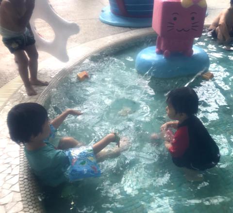 この日も小雨がぱらついていたけれど、温かい温泉プールでたっぷり遊べました!