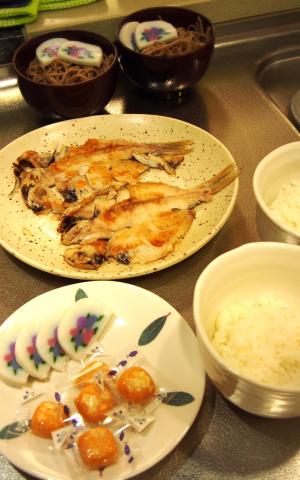 二口コンロだからお蕎麦ゆでながらでもおさかな焼けちゃう。