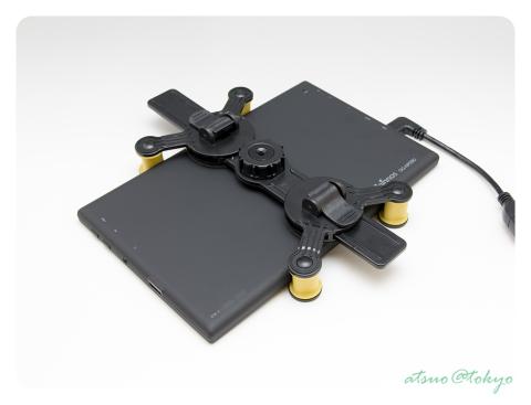 PCと繋ぐだけならば置くだけのタブレット用スタンドを用意すれば良いのですが、カメラと繋いだり場所を問わず設置するのに三脚取付用のホルダーの方が便利だろうと探して見つけたのが本品です。