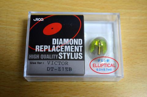 VICTOR社のMMカートリッジZ-1S(プレーヤー付属)に使ってみました 針を換えて丸針→楕円針になりますが、本来はVICTOR社のZ-1EBと言うカートリッジに適合する交換針です。勝手ながら私のネット情報判断でカートリッジ本体は同じものであろうと推察しレコード針のみを交換してみました。Z-1Sが丸針仕様、今回のZ-1EBが接合楕円針仕様です どれ位両者で差があるのか実験したいと思います 交換針製造はJICO社(日本精機宝石工業株式会社)です。