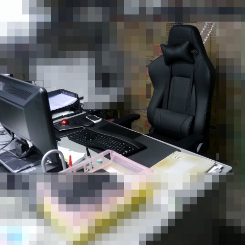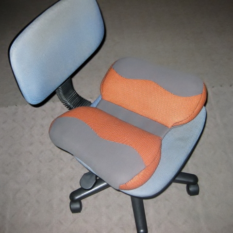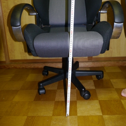 座面にクッションを敷いていますが、事務机やPCモニタとの位置が合わず、姿勢が悪い