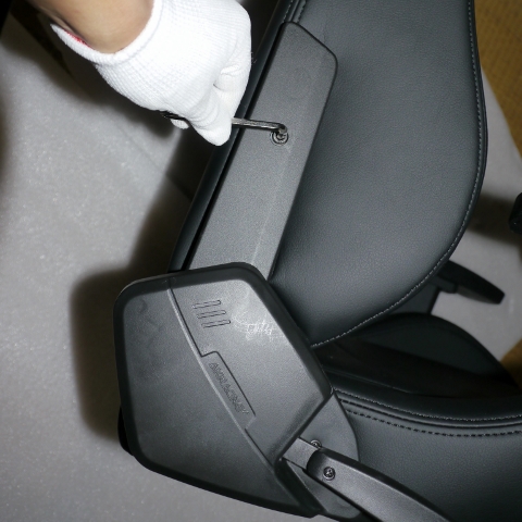 まず、背もたれ部分の側面に仮止めしてあるネジ2本を外し、