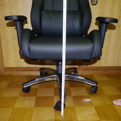 レビュー対象の「AKRacing Premium オフィスチェア」は座面が少し高めになる、中尺