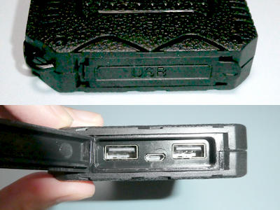 カバーを開けると、中には本体充電用のMicro-B(中央)と、給電用のType-Aのポートが2つ(左右)あるのが判ります。
