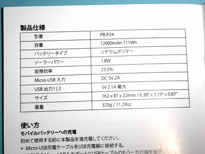 AUKEY のソーラーチャージャー対応モバイルバッテリー PB-P24 のレビューになります。