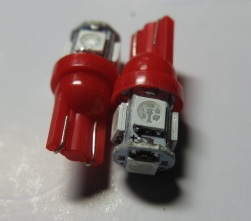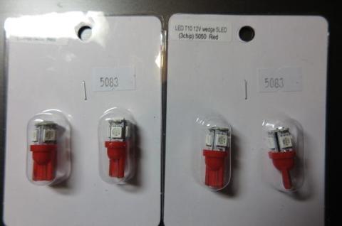 T10の赤色を使う用途はあまりないのですが,ドアカーテシがT10電球+赤色カバーだったので,LED化の際に,赤色LEDにしました.上のホワイトLEDでもこのレッドLEDでも見た目は変わりません.